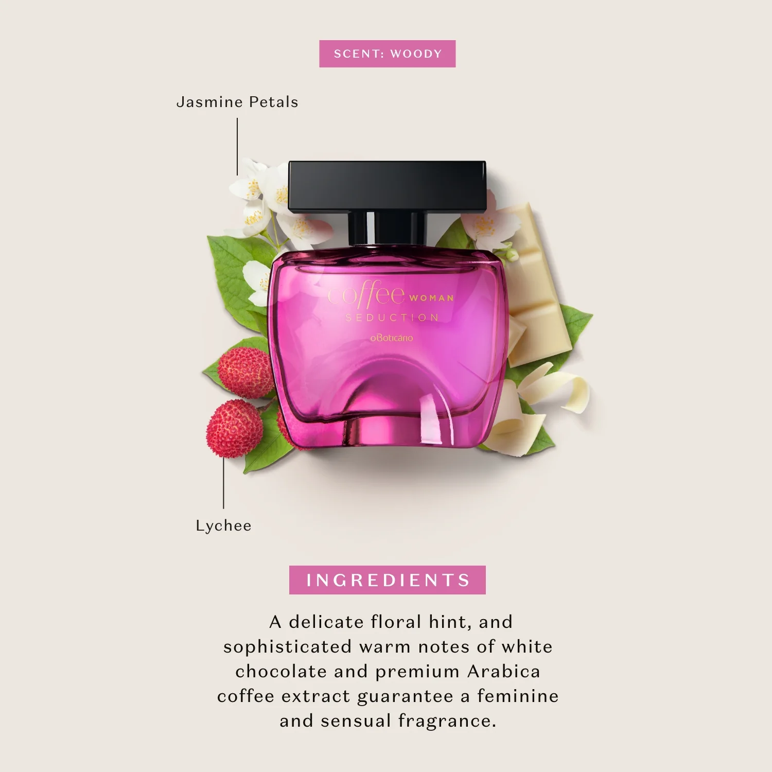 A favorite in the Coffee line of fragrances, Coffee Woman Seduction Eau de Toilette is irresistible the moment you spray it on your skin. A delicate floral hint, and sophisticated warm notes of white chocolate and premium Arabica coffee extract guarantee a feminine and sensual fragrance. Arouse the senses and enjoy unique experiences with Coffee.